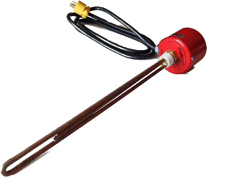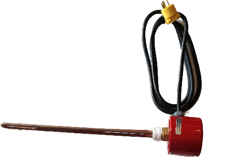 Our Electrical Immersion Heaters are industrial grade, temperature-controlled electrically operated units designed specifically to heat our SAE Type I deicing fluid prior to deicing operations. The standard units are available in both 120- & 240-volt configurations. They feature a Brass 1" MNPT threaded screw plug, a heavy-wall seamless copper sheath heating element and thermostat bulb, a weather resistant cover, a 6' all-temperature (-40° to +194° F) indoor-outdoor cord, and a factory-set (160° F) automatic thermostat. All the 120 volt units (except the 2500 watt) can be plugged into a standard 3-prong grounded outlet; the 120 volt / 2500 watt and the 240 volt units require a special plug.